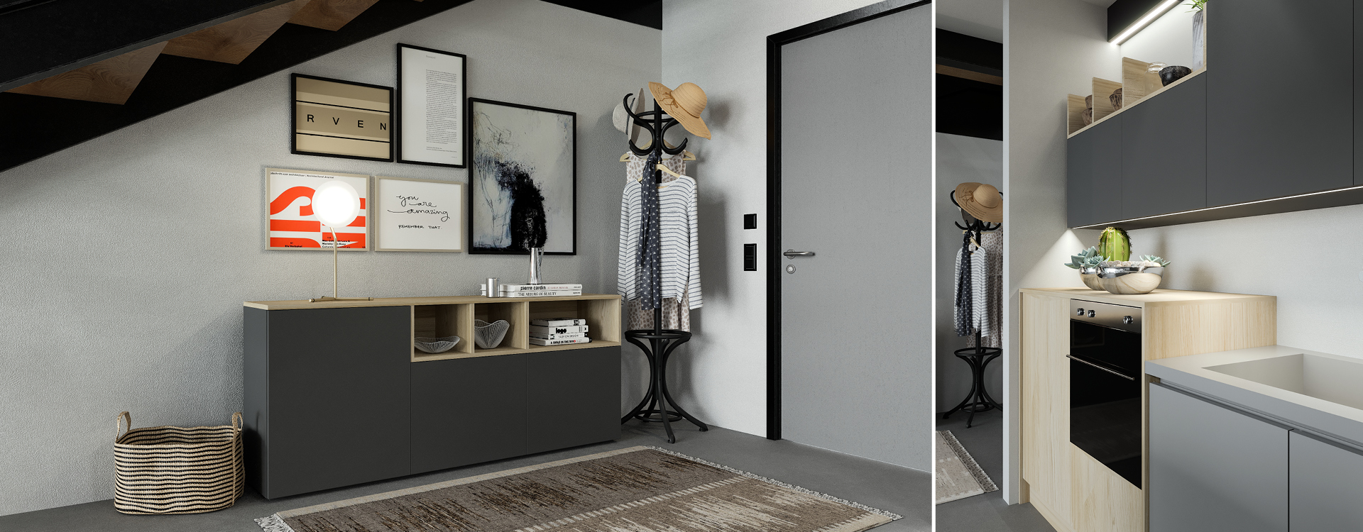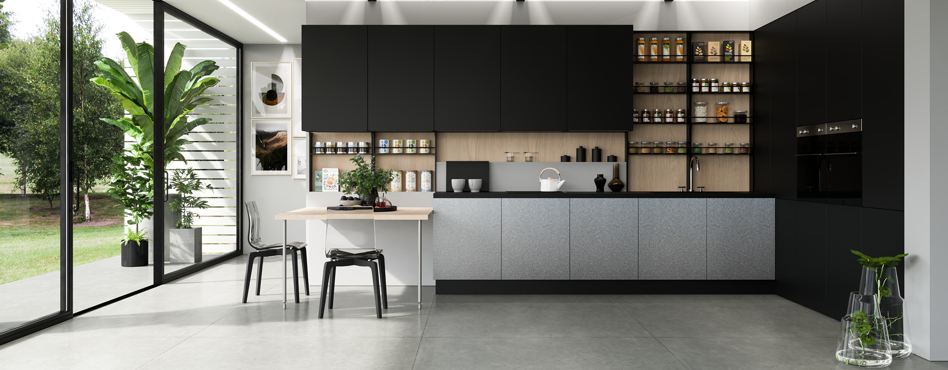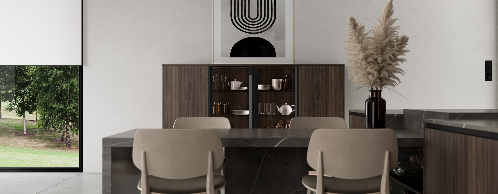 A buffet in the same materials and colors completes the look while offering additional storage solutions only to confirm that the kitchen is not just another space, but the heart of your home.