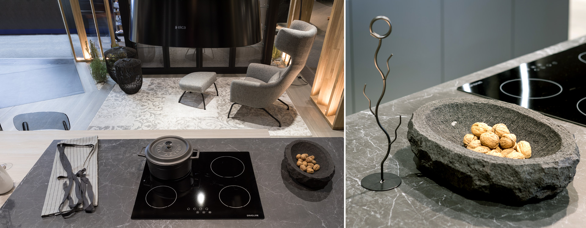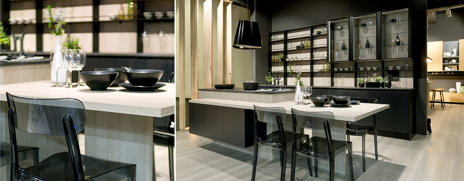 Molten, inspirée par le délicieux dessert ( Fondu) qui vous font fondre, est une cuisine mystérieuse et élégante. Bien que la couleur sombre soit considérée comme aspect audacieuse en décoration, le cas de Molten, elle provoque des vagues d’amour! C’est une cuisine minimale et moderne, avec un accent en verre