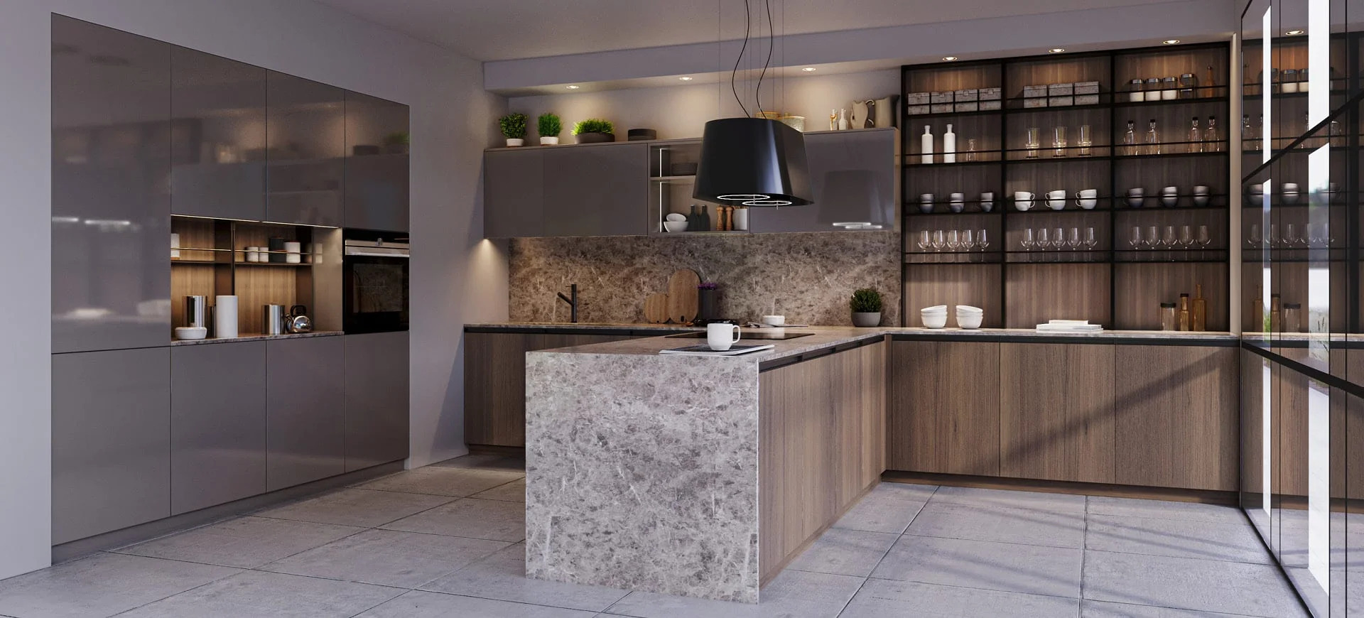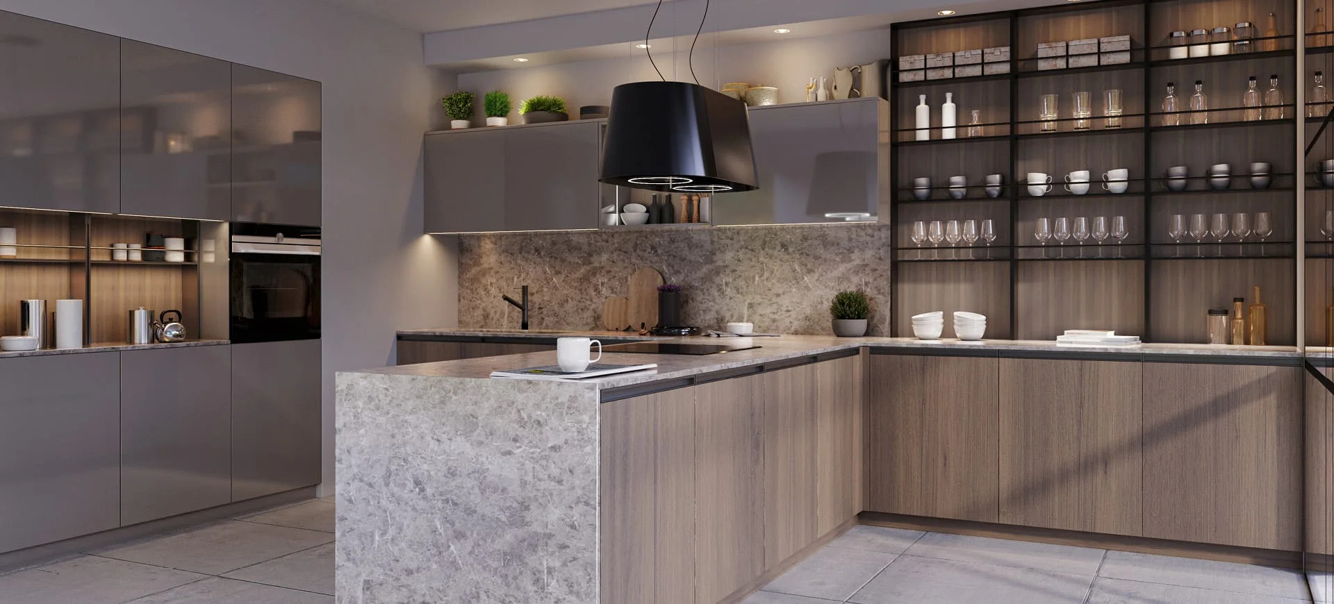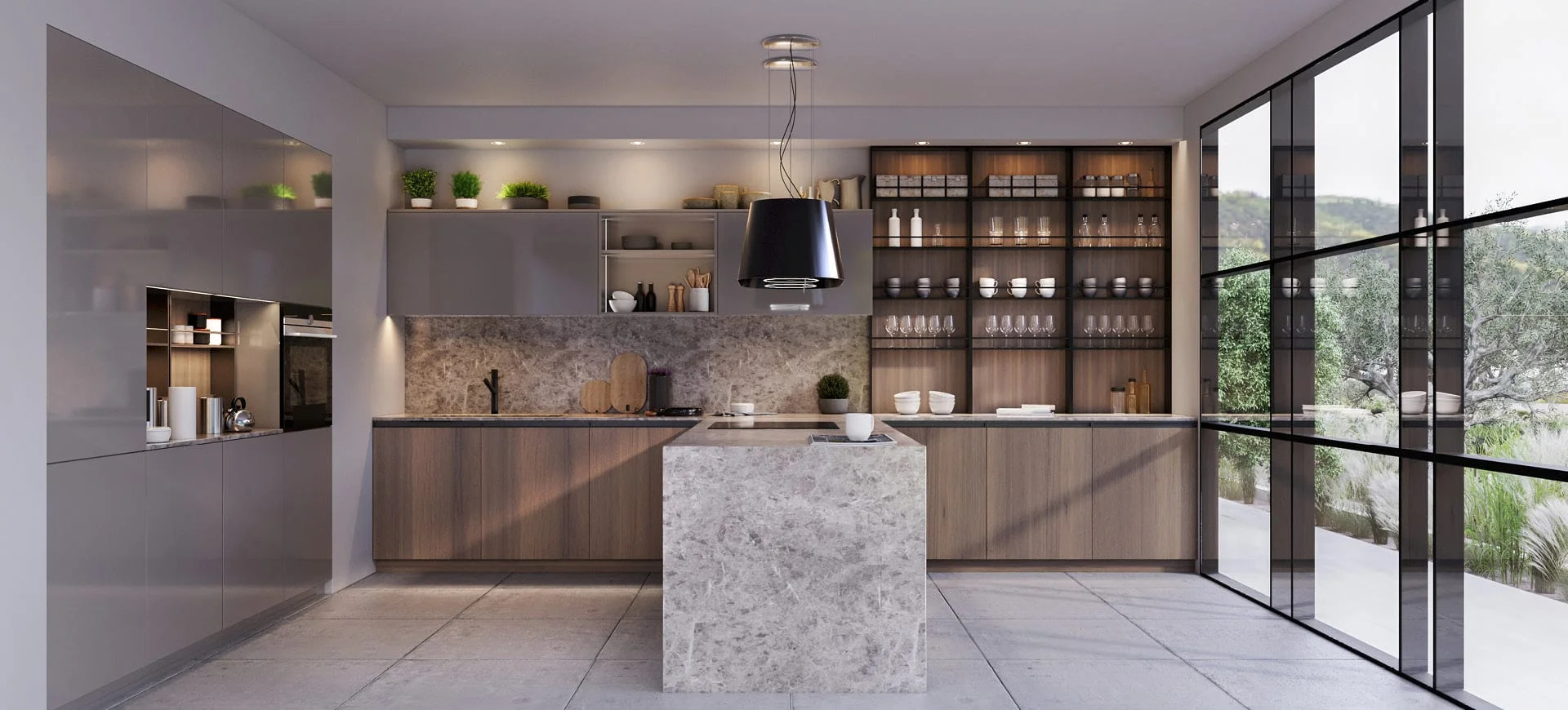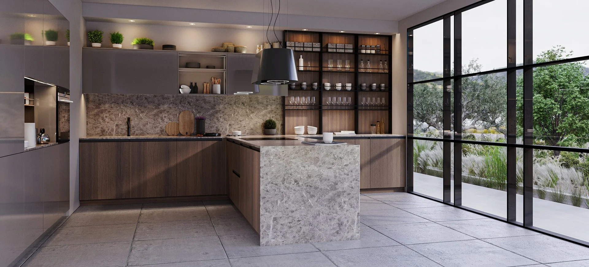 Ils sont la dernière tendance dans la conception de cuisines haut de gamme et deviennent de plus en plus populaires. Pour avoir un effet fort, on peut les intégrer dans toute la cuisine et pour une touche de glamour, on les combine avec d’autres matériaux comme le bois, métal et pierre qui est là dans notre cas de Mosaiko.